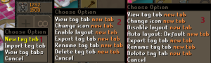 Importing and exporting a bank tag string is rather simple. By using the 'Export tag tab' option from your chosen bank tag's right click menu. Refer to previous image. You will automatically get the bank tag's string copied to your clipboard (copy/paste). From here you can either manually edit the string in your preferred text editor or you can simply import the code as a new bank tag where you require it. To import the code simply right click the 'plus' icon within your bank's UI and 'paste' your chosen string.