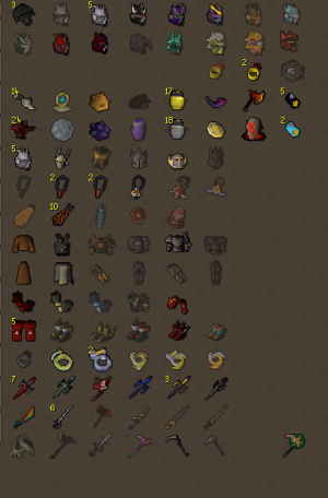 Includes the beginner clue collection log, all clue/casket variants and League related materials.