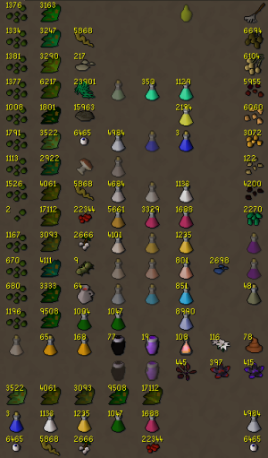 Includes all herbs and their optimum secondary. Also includes requirements for Bottomless Prayer Renewal and Bottomless Overload located at the bottom left of the tag.